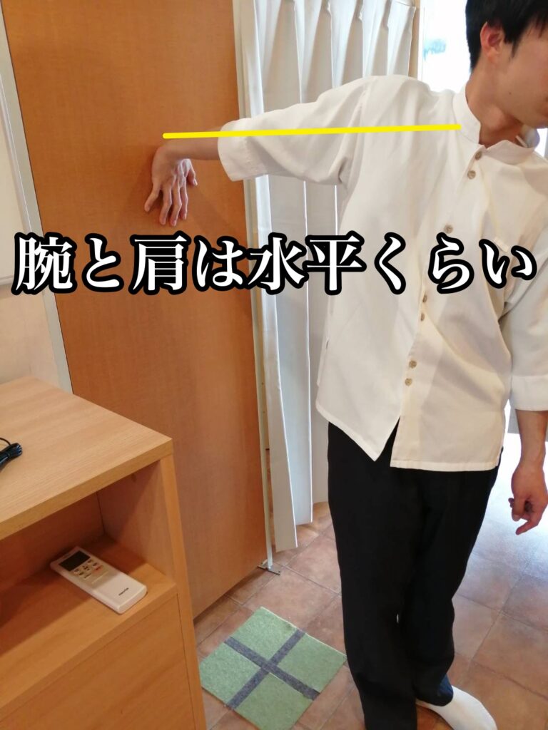 セルフケア セルフケア 肩甲骨 naoto 2021年4月15日 / 2021年8月15日 セルフケア 肩甲骨 肩甲骨 やり方 手のひらを返します。指先が下に向くように。 壁に手のひら全体をくっつけてカラダを反対に向けます。肩と腕は水平くらい。 このまま90秒。 痛くてできない場合は手の位置を少し下げましょう。