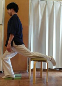 椅子に足を置き、股関節を反らすような形を作る。